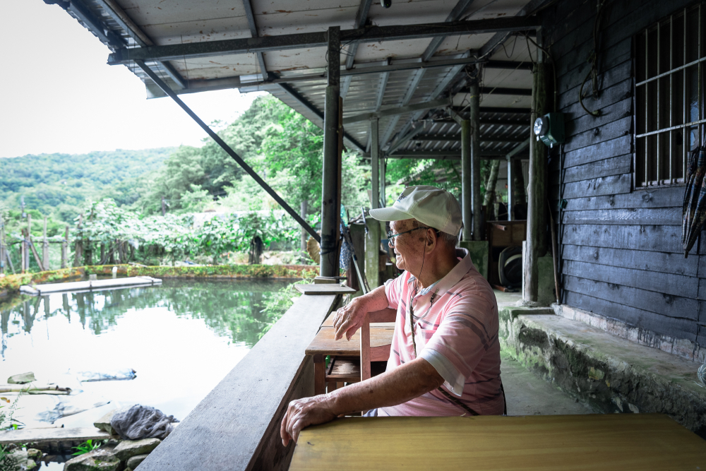 住在火燒寮的阿公身體硬朗,笑起來露出幾顆銀亮的牙齒,熱情地招呼我們喝茶,細細和我們介紹自己一磚一瓦蓋起的房屋,還有養到快比我的大腿還粗的草魚。但那天,他說得最多的,是以前怎麼騎摩托車摔倒、怎麼自己改裝鐵牛車上下山。而有時爆胎了,電話收訊又不好,就只能慢慢走回家。